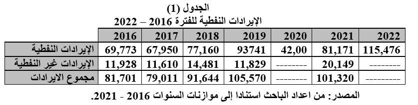أهملت القطاعات الاقتصادية خلال الفترة التي سبقت عام الاحتلال حيث كان بين العسكرة والاهمال، ولذلك كانت الايرادات النفطية تساهم بالجزء الاكبر من ايرادات الدولة، ولذلك اعتبر العراق دولة ريعية. ورغم محاولات البعض للنهوض ببقية القطاعات الاقتصادية إلا انها تواجه بقيود تمنع هذه المحاولات في العراق، ويوضح الجدول رقم (1) الايرادات النفطية للفترة 2016 – 2022 (1). وتشير التقارير الى ان الفوائض المالية قد تتجاوز 37 مليار دولار لعامي 2021 و2022 اذا استمرت اسعار النفط بسعر يفوق 85 دولارا.
